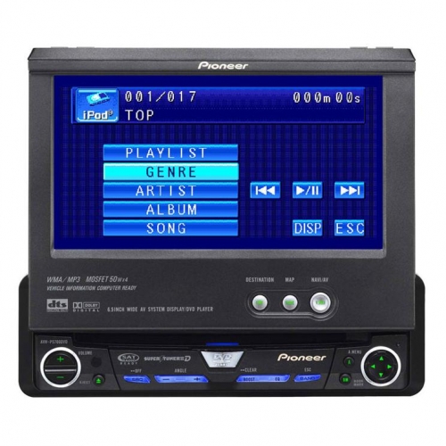 AVH-P5700DVD - DVD/CD - автомагнитола. Краткие технические характеристики: 4x50 Вт, CD-R, CD-RW, DVD R, DVD RW, MP3, WMA, MPEG4, JPEG, усилитель, эквалайзер, цветной моторизированный дисплей с диагональю 6.5 дюймов.